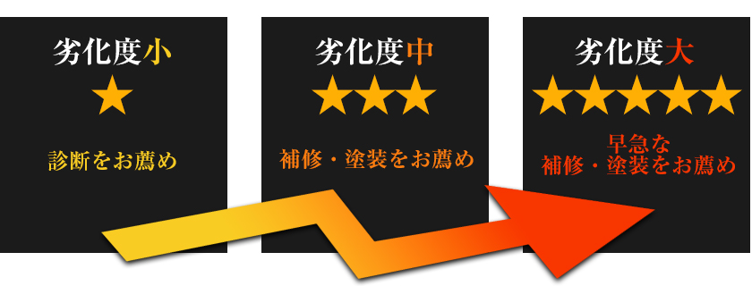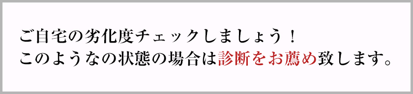 下記のような症状が表れたら劣化のサインです。