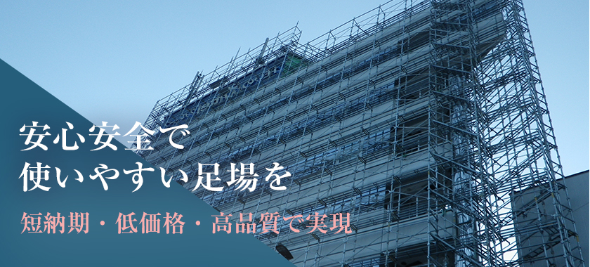 快適で使いやすい足場空間の創造をモットーに、 お客様が求められるスペックの足場を1現場ごとに実現し、安心・安全な工事を、私たちがサポート致します。