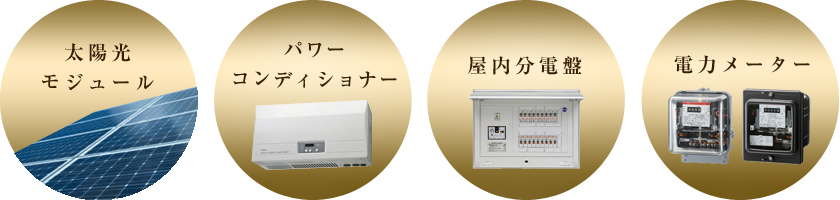 太陽電池モジュールで作られた電気を、パワーコンディショナーにより家庭で利用できる電気に変換して使用します。